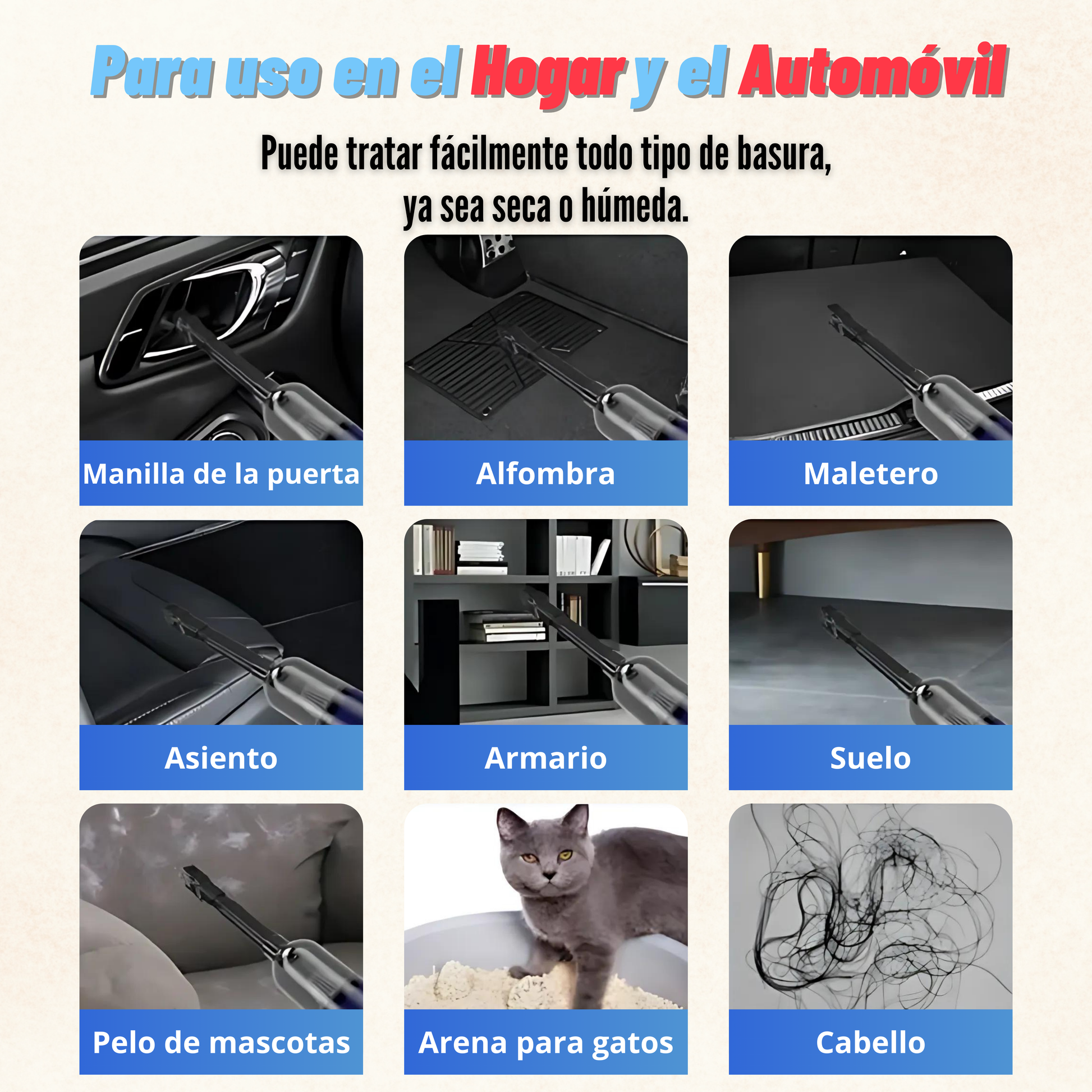 - Versatilidad Total: Ideal para autos, muebles, alfombras y espacios estrechos donde la suciedad se esconde.